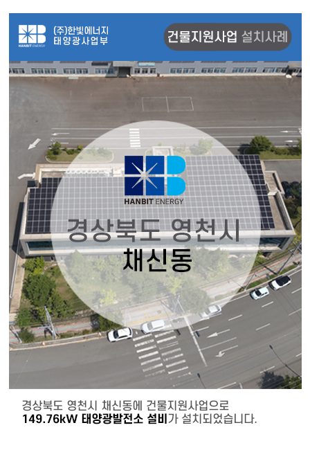 경상북도 영천시 채신동에 에너지공단 건물지원 사업으로 149.76kW 태양광 발전설비 설치사례