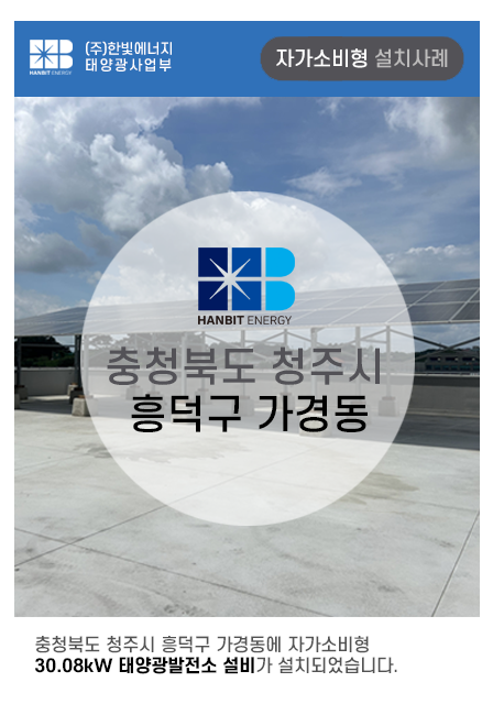 충청북도 청주시 흥덕구 가경동에 자가소비형 30.08kW 태양광발전설비 설치 사례