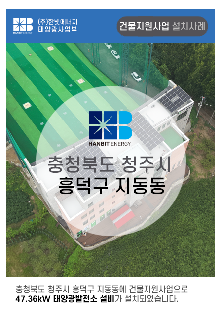 충청북도 청주시 흥덕구 지동동에 에너지공단 건물지원 사업으로 47.36kW 태양광 발전설비 설치사례