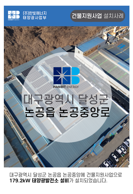 대구광역시 달성군 논공읍 논공중앙로에 에너지공단 건물지원 사업으로 179.2kW 태양광 발전설비 설치사례