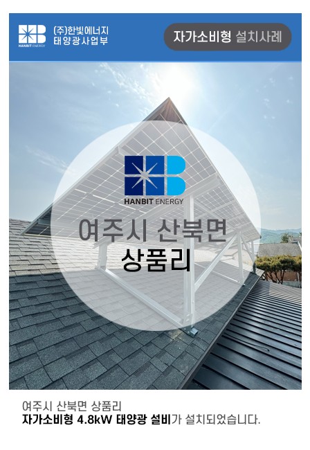 여주시 산북면 상품리에 자가소비형 4.8kW 태양광설치